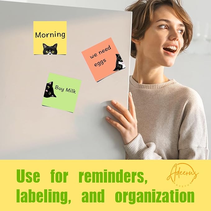 • 【VERSATILE AND ESSENTIAL】 Adeerus Sticky Notes are the perfect solution for writing messages, shopping lists, reminders, to-do lists, color-coding, labeling, family chore reminders, brainstorming, storyboarding, quick notes, schedules, checklists etc.