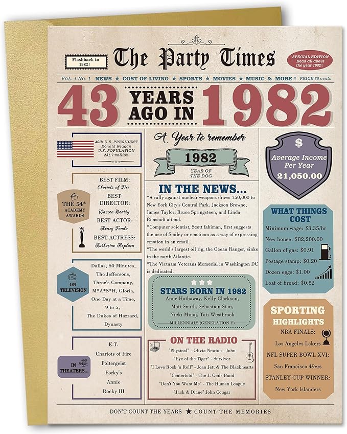 43rd Birthday Gifts Men Women, 43rd Birthday Card for Him Her, 43 Year Old Birthday Decorations for Husband Wife