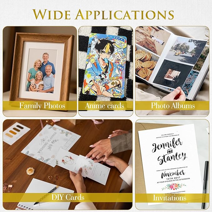 • Wide Application: Perfect for Family Photos, DIY Photo Albums, Invitations, Certificate Photos, Greeting Cards, Anime cards, etc.