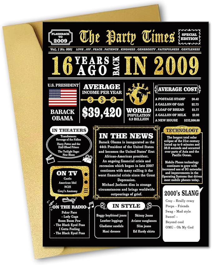 • PERFECT GIFT IDEA -Find interesting 16th birthday cards for your kids. The cards contain some specific events in 16 years ago, which can help you review interesting events with family and friends.