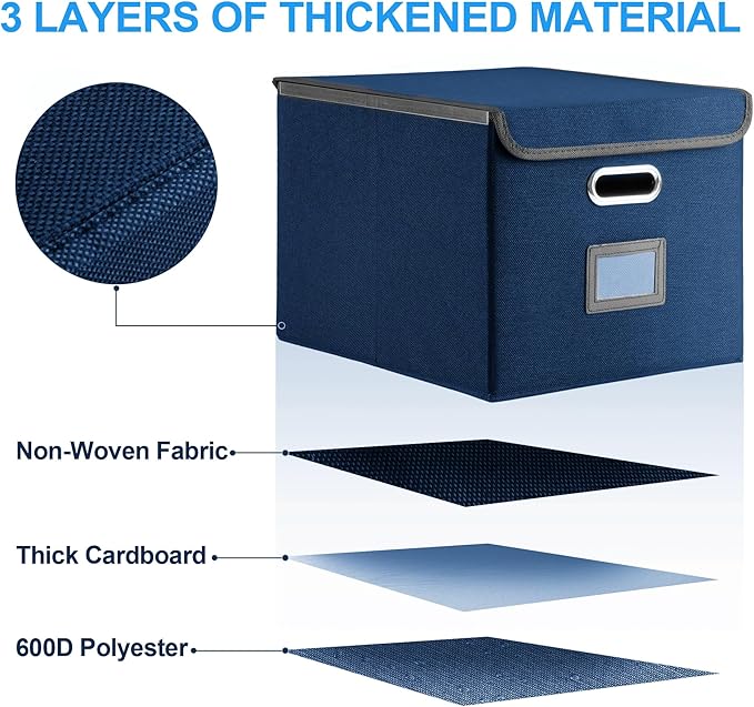 - 【Multi-Purpose Storage Solution】 Beyond files, use it to organize books, school supplies, toys, or seasonal items. The dustproof linen fabric and Velcro-secured lid keep contents clean, while the transparent label slot enables quick identification.