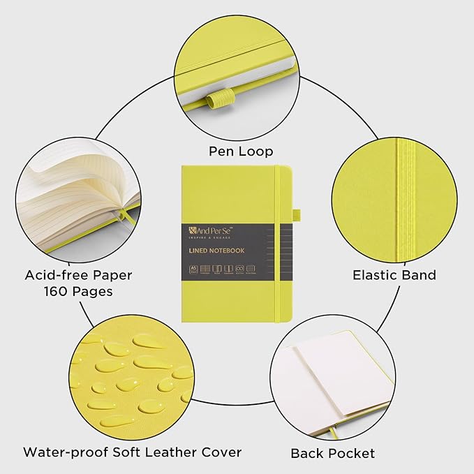 • 160 PAGES LINED NOTEBOOK: 80 sheets/160 lined pages provide ample space for writing. The A5 size (5.7'' × 8'') makes this notebook the perfect travel companion.