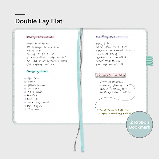 • 180° LAY-FLAT DESIGN: The lay-flat design allows for easy writing and ensures that you can utilize every page efficiently. Journaling, note-taking and planning has never been easier! 2 Bookmarks to help you find important content faster