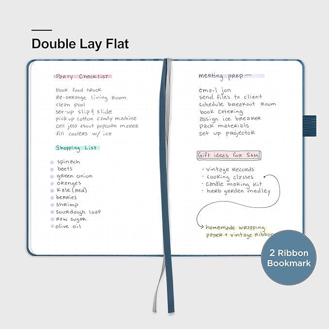 • 180° LAY-FLAT DESIGN: The lay-flat design allows for easy writing and ensures that you can utilize every page efficiently. Journaling, note-taking and planning has never been easier! 2 Bookmarks to help you find important content faster