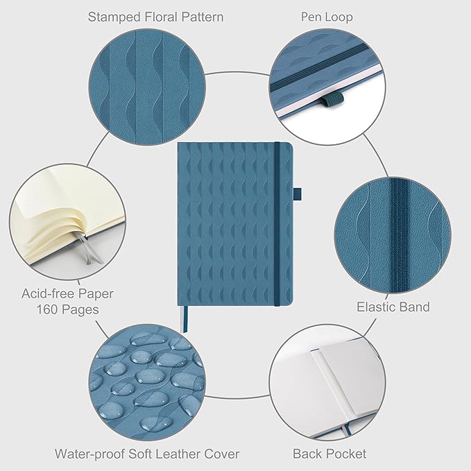 • DURABLE HARDCOVER NOTEBOOK: Durable PU leather hardcover, protects ruled notebook from wear and tear, provides a comfortable writing surface. Expandable back pocket includes free stickers can holds notes, business cards, small gadgets
