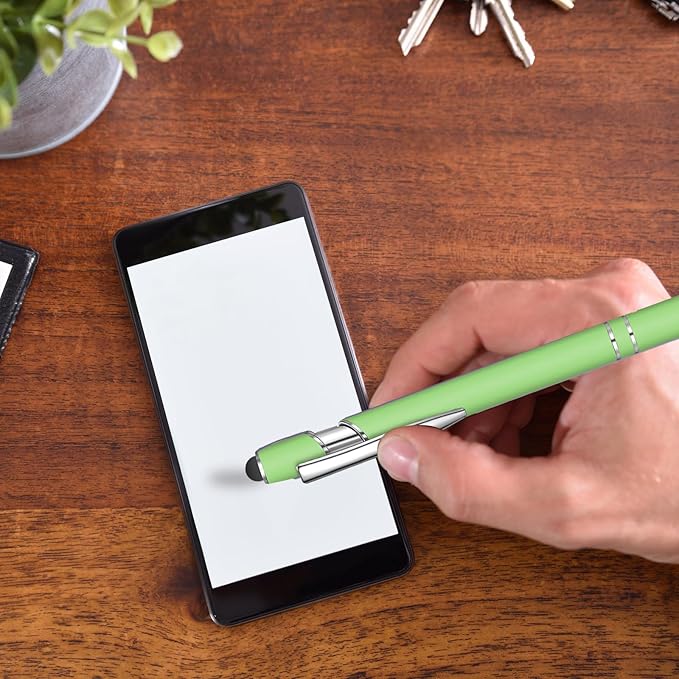 - 2-in-1 design stylus: Touch screen stylus and ballpoint pen; one end has a sensitive stylus and the other end comes with a high quality blue ballpoint pen, twist the stylus pen body to extend the pen; you can use this pen to take notes on your tablet, phone or computer screen