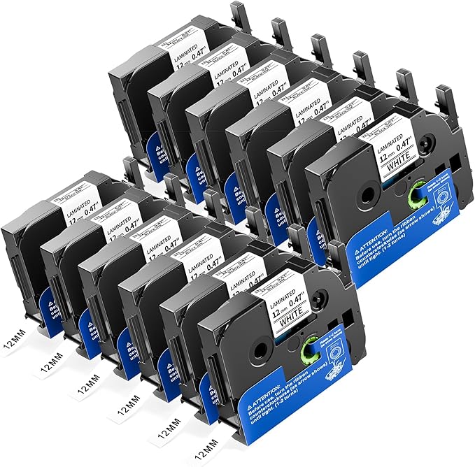 Colorty Replace for Brother P Touch Label Maker Tape 12mm 0.47 Laminated Black on White TZe-231 AZe-231 for PT-1180 2040 1090 1750 1290 1880 1170 Ptouch Tape Refills 12mm x 8m, 12-Pack