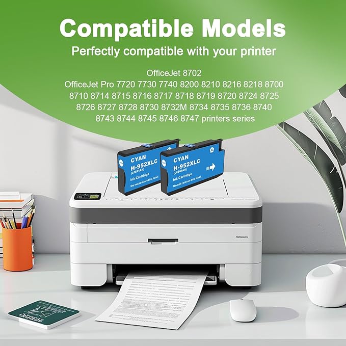 - 【Protect Our Planet Together】: NEXTPAGE compatible 952xl cyan high-yield ink cartridge produce vibrant, true-to-life colors and crisp, sharp text for professional-quality documents, photos, and presentations; meanwhile, all NEXTPAGE 952 xl ink are made with recyclable materials to reduce waste and minimizing your carbon footprint