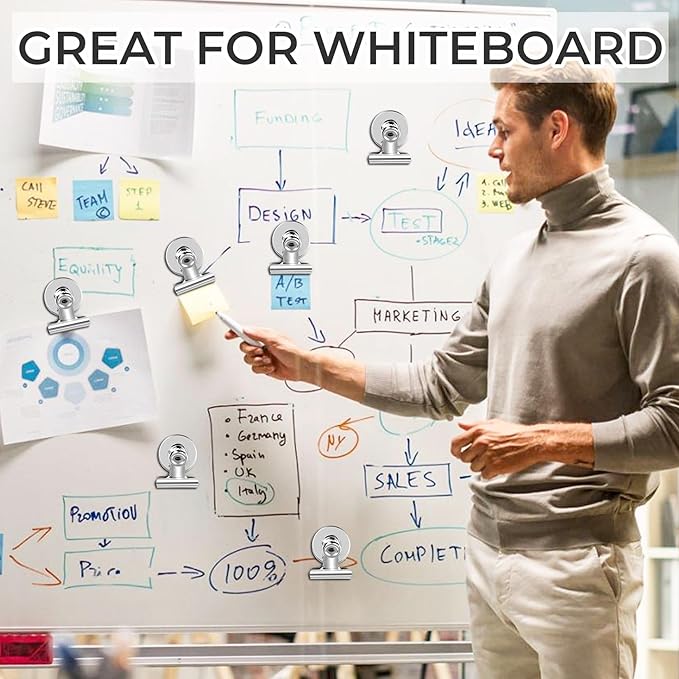 • Strong and Secure: Experience the power of heavy-duty magnetic clips. Safely hold over 25 sheets of A4 paper, preventing slips or falls on any metal surface.