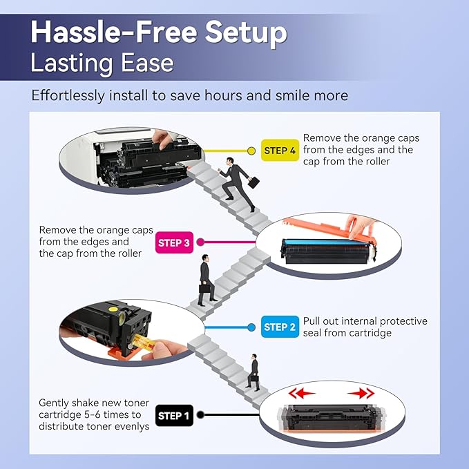 - [Smart Chips Included] Highly compatible for HP 206x toner cartridge set - built in smart chip ensures hassle free setup. Achieve office mastery with every frustration free installation