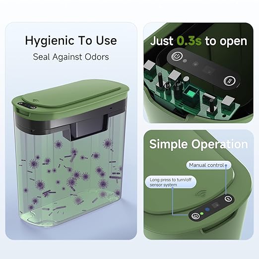 • 【Touchless Convenience】Simply place your hand above the infrared motion sensor, the lid will stay open, and will automatically close if no object movement is detected within 5 seconds. Requires 2 AA batteries (not included)