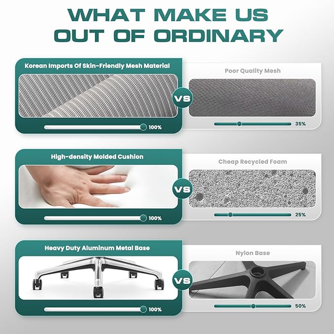 - ⏩ VENTILATED ERGONOMIC MESH OFFICE CHAIR--Adopting high-end breathable mesh fabric imported from Korea with great flexibility and durability, the high back office chair perfectly fits the curve of your spine and protects the cervical and lumbar spine. In addition, the lumbar support also offers well support for your back.