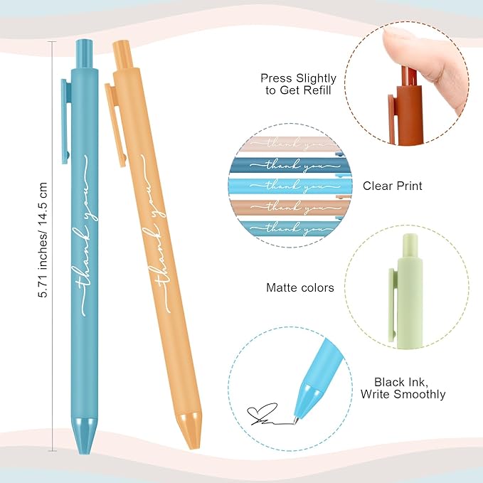 • Convenient Size: the thank you pens are created with a standard size, providing an easy fit into any pen holder or pocket; Their professional size also ensures a steady and reliable grip throughout writing performances