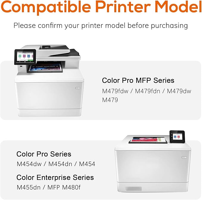 • Compatible Printers: The Jeostarky 414a toner cartridges are compatible with HP Color Laserjet Pro MFP m479fdw, M479fdn, M479dn, M479dw, M479 series; for HP Color Laserjet Pro M454dw M454dn M454 series; for HP Color Enterprise M455dn M480f series printer
