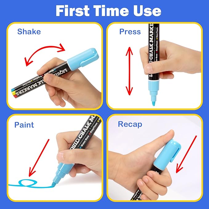 - All-in-One Creative Powerhouse - From teachers’ lesson plans to kitchen labels and influencer-worthy holiday displays—this chalkboard markers set does it all! Shake for 5 seconds to activate intense color. Whether it’s graduation photo backdrops, Halloween car window art, or corporate event signage, prepare for amazed reactions: "Wow! This looks pro!"