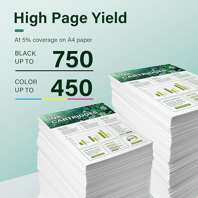 - High Page Yield: It yields up to 750 pages for each 65XL Black Ink and 450 pages for each 65XL Color Ink at 5% coverage (A4e letter)