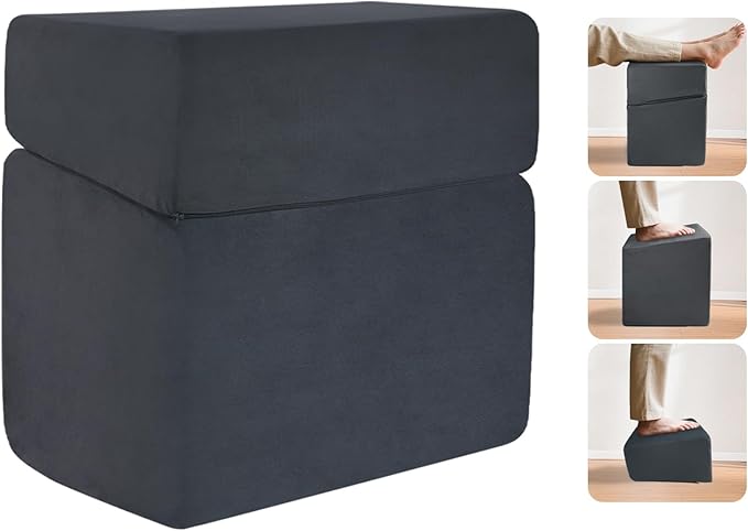 - [3-IN-1 HEIGHT ADJUSTMENT] Customize your footrest to 6.3" (16cm), 11.8" (30cm), or 16" (41cm) with a simple detachable design—perfect for any body type, chair height, or space. Stack layers for elevated leg support or remove tiers for a compact fit under desks, sofas, or gaming setups. Reduce leg fatigue and improve posture during work, relaxation, or long gaming sessions.