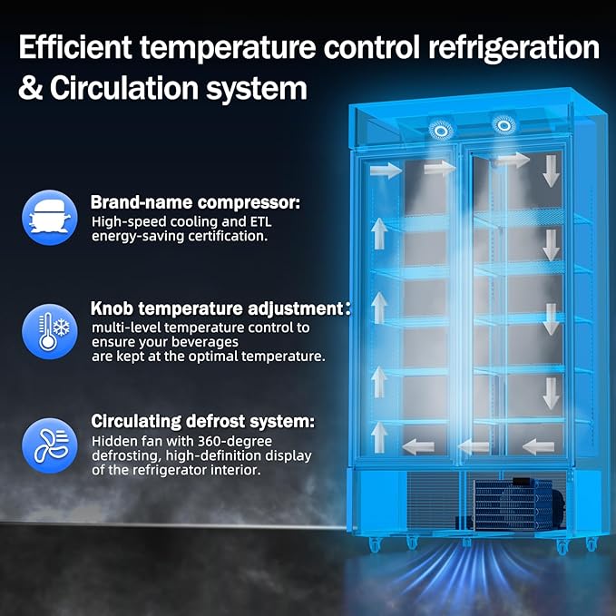 - Fast refrigeration & frost-free design: This commercial beverage refrigerator features a powerful compressor and advanced airflow system for fast, frost-free cooling, with precise digital temperature(36℉-47℉) control to maintain ideal drink conditions