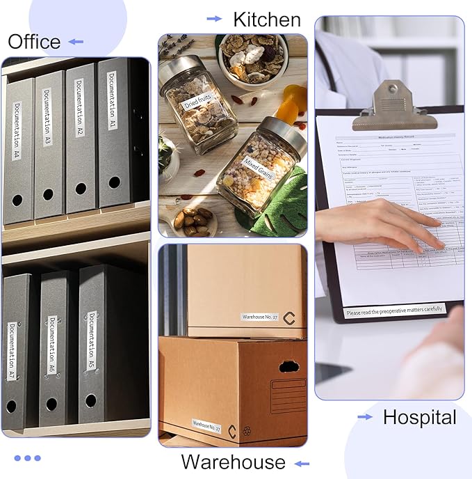 • Applications: Perfect for indoor use, it is an ideal solution for labeling tasks such as files, folders, classified documents, bookshelves, kitchens, books, supply cabinets, refrigerators, accessories, etc.