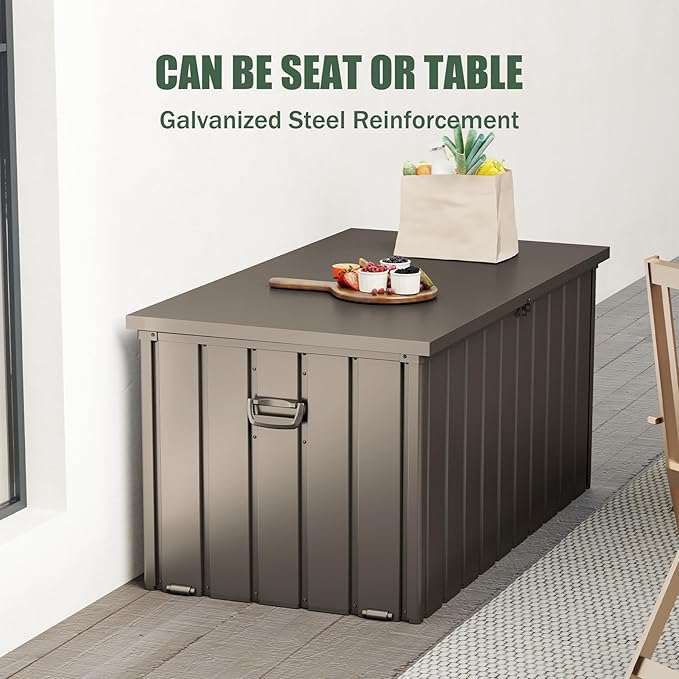 Domi Outdoor Storage Deck Box 120 Gallon, Waterproof Lockable Steel Outdoor Storage Container for Outside Cushions, Garden Tools and Pools Equipment, (Brown)