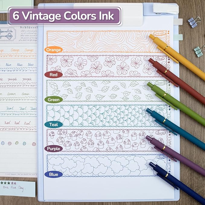6 Pcs Color Pens for Journaling 0.5mm Fine Point Colored Gel Ink Pen, Smooth Writing Colorful Pens for Note Taking, Gift Set for Women & Men (6 Pcs Vintage Gold)