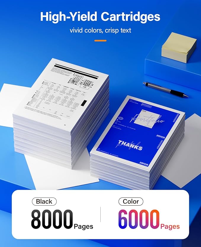 - High Page Yield: 8,000 pages for Black and 6,000 pages for Color toner cartridge (Letter/A4, at 5% coverage)