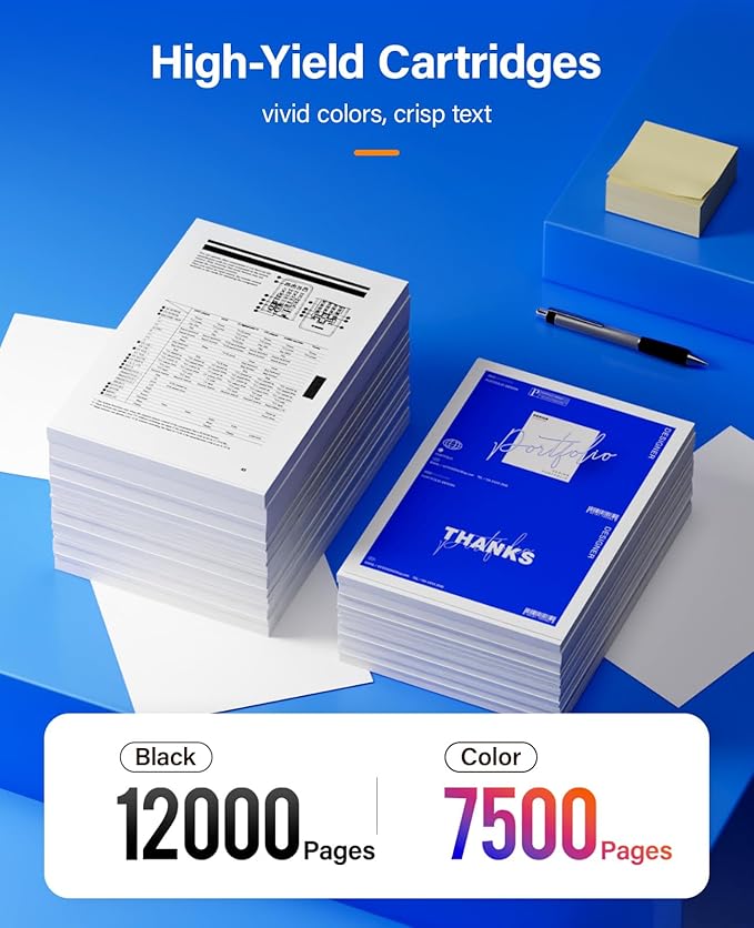 • High Page Yield: 12,000 pages for Black and 7,500 pages for Color toner cartridge (Letter/A4, at 5% coverage)