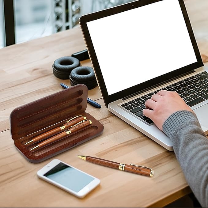 • 🎁 GIFT PACKAGE INCLUDED: 3 x wood pens, 1 x wooden pen box gift, 6 x black refills for ballpoint pens, 1 x Congratulation card.
