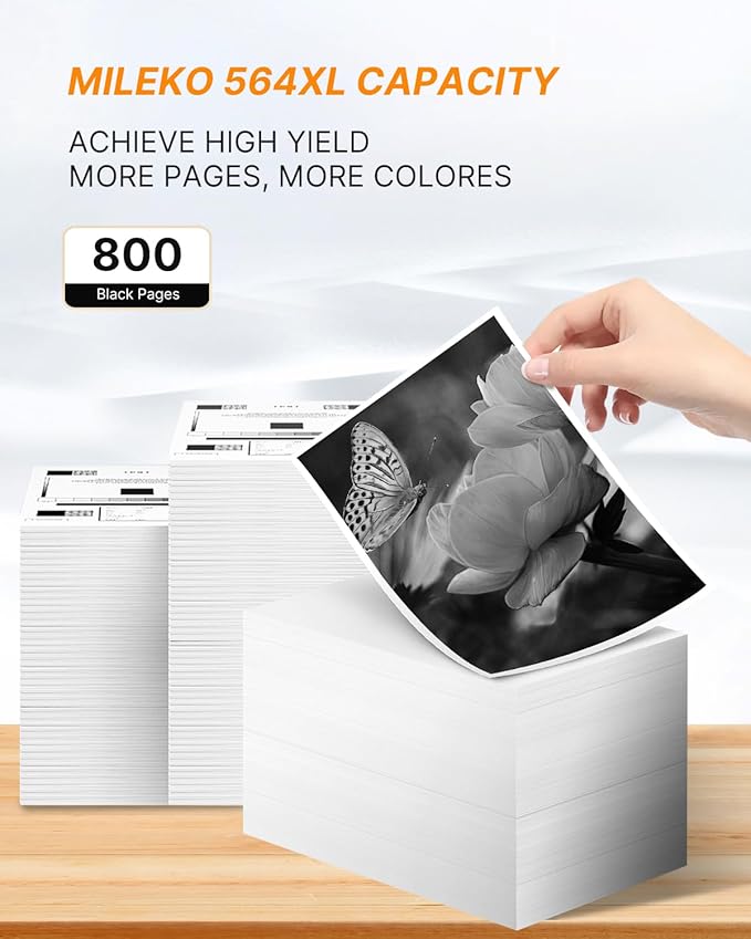 - 5.【Premium Quality】MILEKO for replacement 564xl ink cartridge for hp printer hp 564 ink cartridges combo pack delivers sharp black and crisp text.