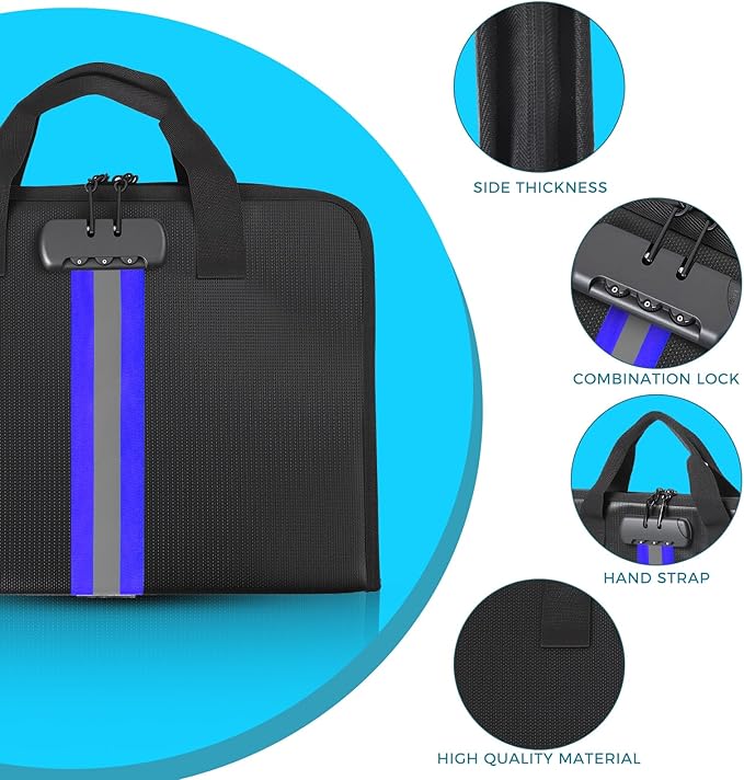 - High-Quality Materials:Fireproof expanding file organizer made of 3-layered silicone-coated fiberglass, withstands extreme temperatures up to 2500℉ has passed SGS testing(UL94 certified). Protects important documents from fire, flood, and wet weather conditions