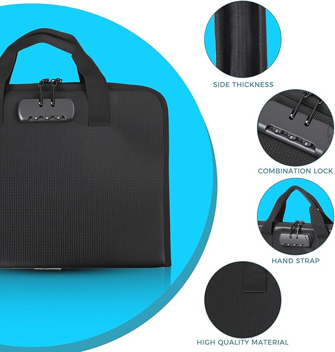 - High-Quality Materials:Fireproof expanding file organizer made of 3-layered silicone-coated fiberglass, withstands extreme temperatures up to 2500℉ has passed SGS testing(UL94 certified). Protects important documents from fire, flood, and wet weather conditions