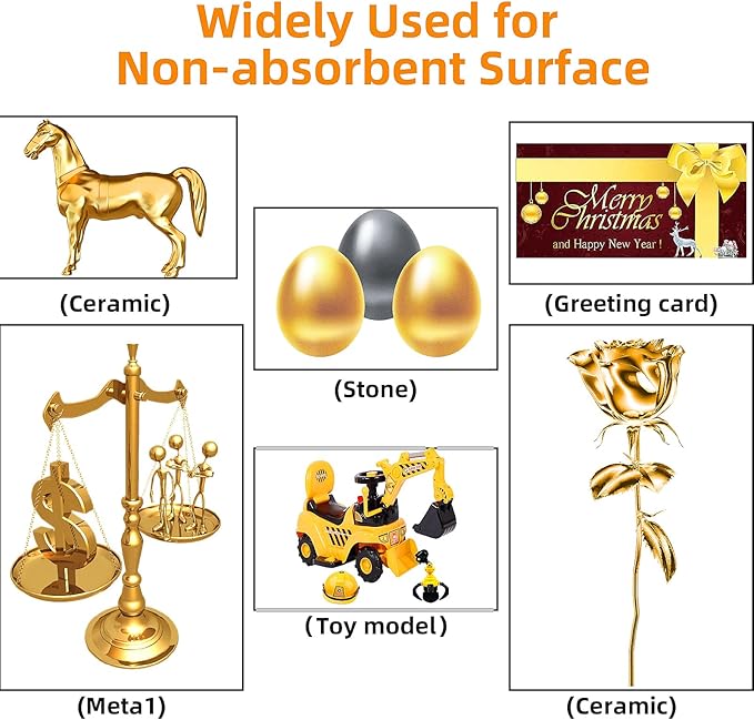 - Wide Application: High gloss reflective gold plating kit metallic markers can be created on most smooth surfaces (such as plastic, glass,metal, rock painting, paper, canvas, ceramic) Perfect for arts and crafts, model paints for plastic models scratch repair, DIY projects, Easter eggs, card making, Christmas cards, cars steering wheel logo, etc. For the best mirror-effect, please apply it on a smooth and non-absorbent surface.