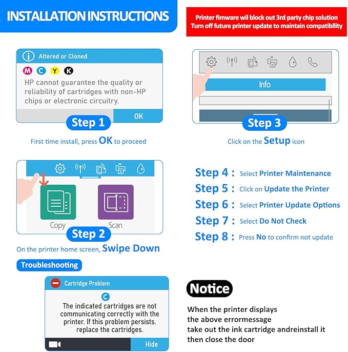 • Compatible for Printers: Works with OfficeJet 9122e OfficeJet Pro 9110b, 9125e, 9128e, 9130b, 9135e OfficeJet Pro Wide Format 9730e Printers(Tipps:936e compatible cartridges do not fit models with Instant Ink service enabled)
