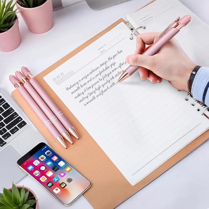 8 Pack Rose Ballpoint Pen with Stylus Tip, Metal Stylus Pens for Touch Screens, 1.0 mm Black Ink