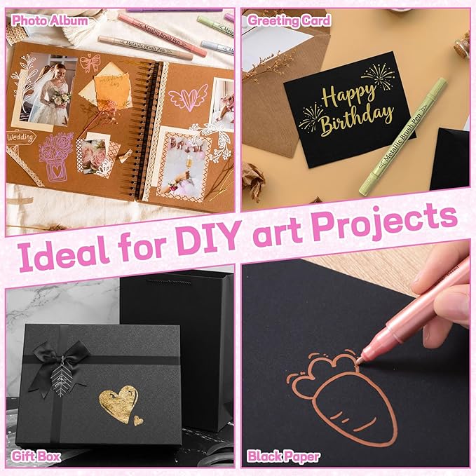 • 【Perfect Gift for Creators】Premium metallic paint markers packed in a sleek set—ideal for birthdays, Christmas, or art students. Elevate rock painting, card making, or DIY crafts with professional-grade tools