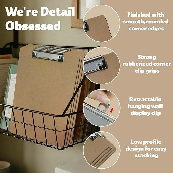 • Convenient Retractable Hanging Loop: The clipboards have a built-in hanging hole that allows document to be freely hung on the wall. When not needed, the loop can be stowed away.