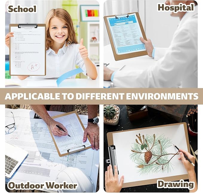 • Set of 24 Clipboard: Include 24 clipboards in a set. Each measures 12.5 x 9 inches which made of thick recycled high-density hardwood. Perfect for A4 size paper. Adequate quantity allows you to share with your classmates and colleagues in classrooms, offices.