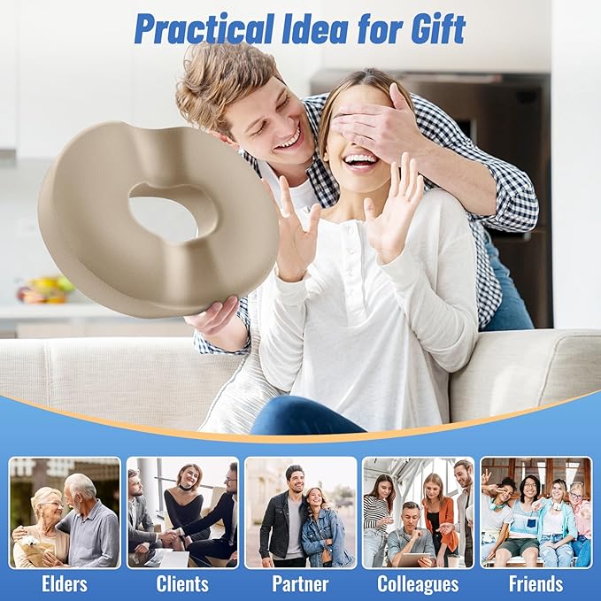 - Relieve Sedentary Discomfort: Whether you have a desk job or spend long hours sitting, sedentary discomfort is a real issue. Prolonged sitting can lead to a variety of health problems, including lower back pain, hip pressure, and even sciatica. CloudBliss donut pillow is your answer to finding relief from these issues. Its innovative design distributes weight evenly, reducing pressure on the spine and promoting proper posture