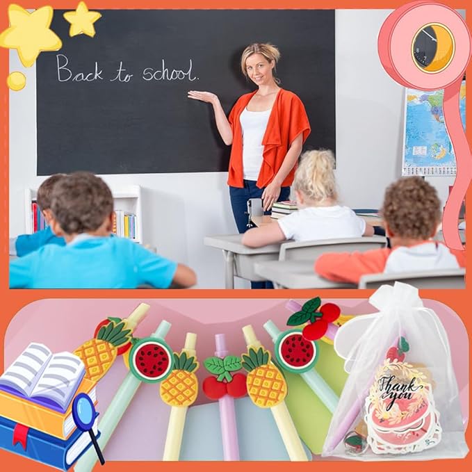 • 4. Smooth Writing: Each Teacher's Day gift pen is 5.9 inches long, convenient and durable. The blue ink writes smoothly and is ideal for daily notes. The pen tip is decorated with cute fruit patterns, adding a fun back to school favors theme