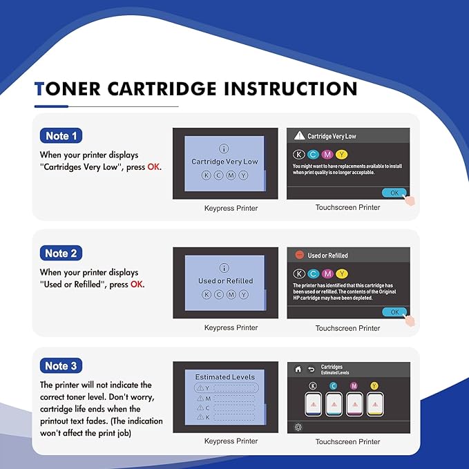 • No chip: 218a 218x toner cartridges 4 pack do not have chips, need to transfer oem 218a or 218x toner cartridge chip to them