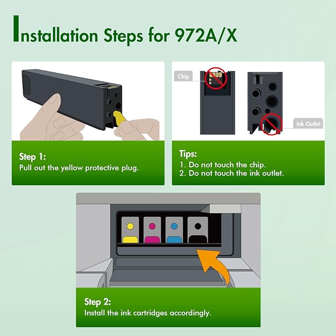 • Product Model: 4 Pack 972A Ink Cartridges for HP 972X 972A Ink Cartridges
