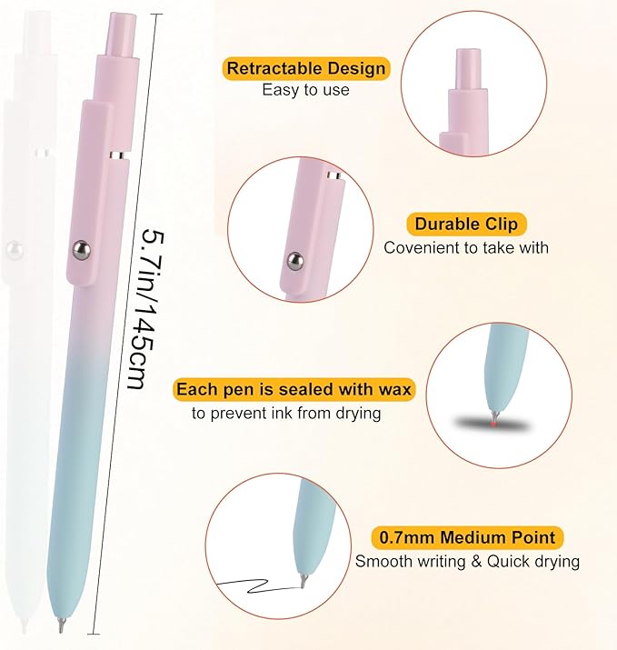 • 【Practical Gift】 You can use these gradient gel pens as gifts for your family, friends, students, classmates and colleagues on birthday, thanksgiving day, graduation ceremony, classroom activities, parties and other occasions.