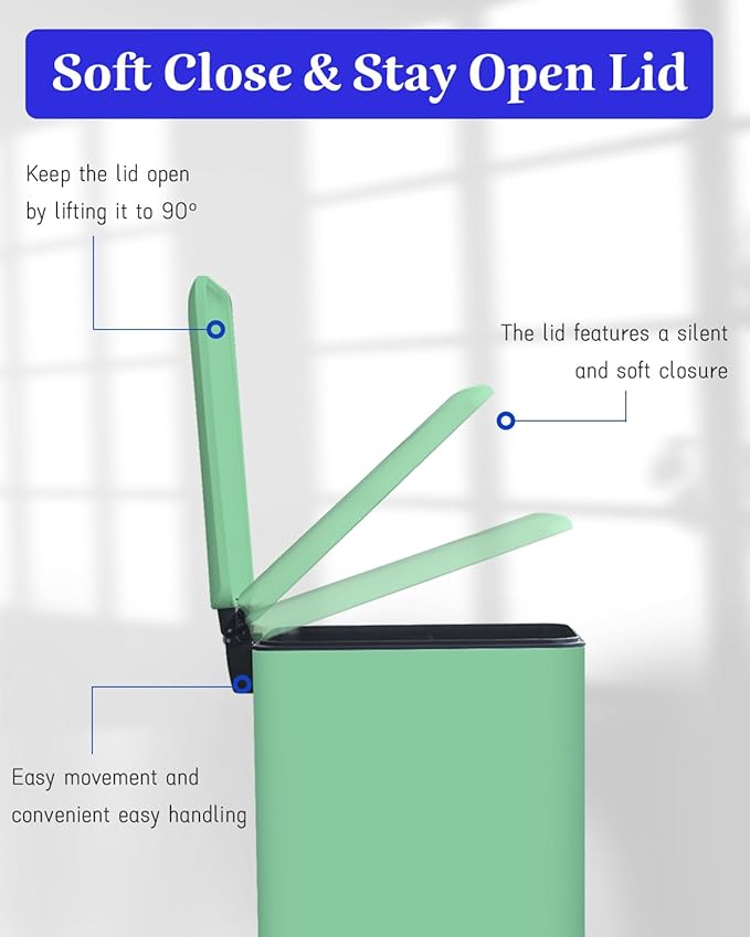 - Removable Inner Bucket for Easy Cleaning: This 8 gallon green trash can included inner bucket makes disposal and cleaning hassle-free, allowing you to easily empty and wash the step trash can without lifting the entire trash can.