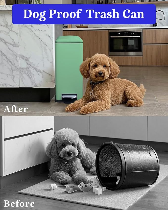 - Pet-Proof & Soft Close Lid:Tall trash can with lid ensuring a smooth and quiet closing every time. This step trash can is perfect for families with small children or pets.Dog proof trash can also prevents pets from tipping over and stays open for convenient use.