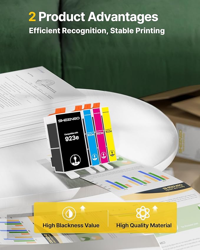 - SHEENGO for hp 923 ink cartridges combo pack is engineered to work with your printers to provide consistent quality, reliability and value