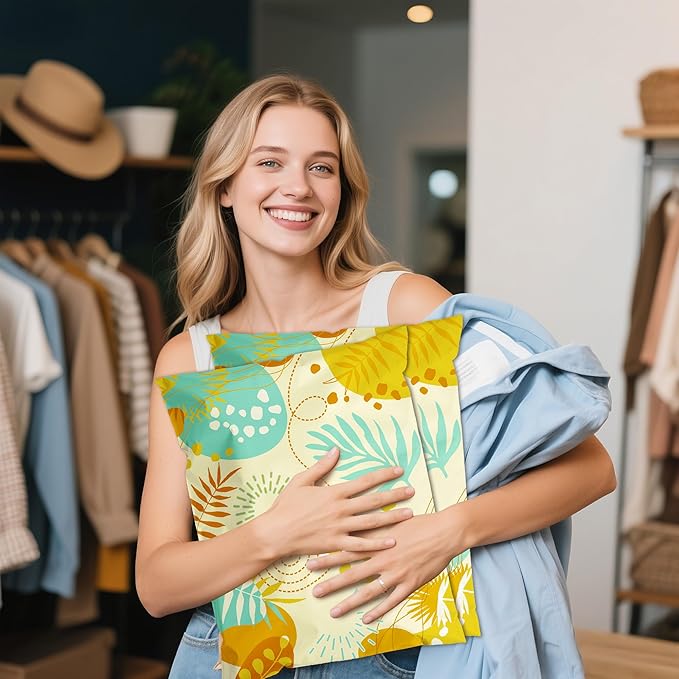 Colorful Leaves Poly Mailer 10x13 Inch 100 Pcs, Waterproof Shipping Bags for Clothing, Tear-Resistant Mailier Bags, Strong Mailing Bags with Self-Seal