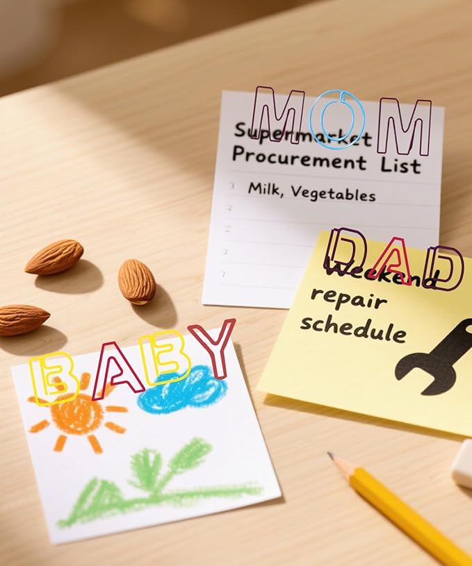 • FAMILY MEMORY SYSTEM——Family title clips (MOM/DAD/BABY) organize albums or bills. Creates household organization solutions with warm-tone designs.