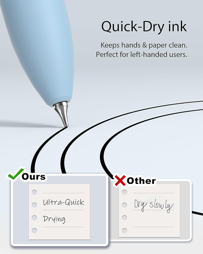 • Quick-Dry Long Lasting Ink:0.7mm black ink can slide effortlessly, dry immediately, & is not easily dirty. It has a high-capacity reservoir (up to 1300 meters), which is very suitable for left-handed & right-handed users.