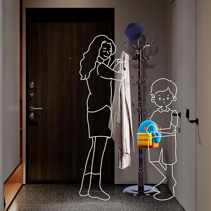 - 【A CLEAN AND TIDY HOME】Do you have the same trouble of disorderly arrangement of things? This freestanding coat rack can make your home look neat.Leave it by the door and use it when you go home or out, easily hanging up your jackets and bags, hat or coat,saving you time to organize.I believe you will love it!