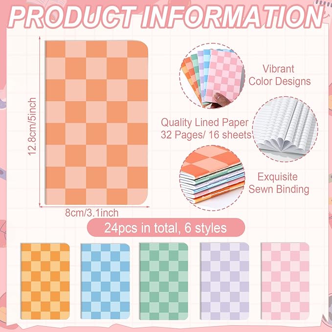 - Rich in quantity: You’ll get 24 small pocket hippie groovy notebooks in 6 vibrant colors, with 4 of each color. The wide range of colors makes them ideal for a variety of uses. Ideal for daily use or sharing with classmates and colleagues, this mini hippie checkered notebook set is both practical and fun.
